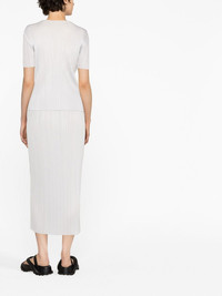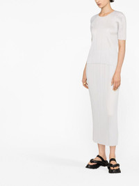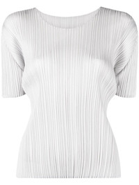 plisse short-sleeve T-shirt Pleats Please Issey Miyake's T-shirt showcases the brand's signature plisse effect. This scoop-neck iteration is free from decoration, keeping the pleating detail centre stage. Highlights - Light grey - Plisse effect - Semi-sheer construction - Crew neck - Short sleeves - Internal logo tag - Straight hem Imported Composition Polyester 100% SIZE & FIT Model measurements Height 5 ft 10 in(1.78 m) Bust/Chest 30.7 in(78 cm) Hips 34.64 in(88 cm) Waist 23.22 in(59 cm) FittingInformation This piece's size conversion is based on body measurements; for help with this item's sizing, refer to our Size & Fit Guide