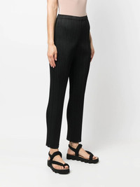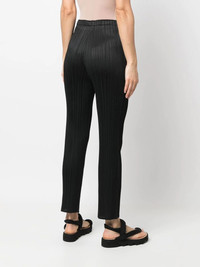 elasticated-waist slip-on straight trousers black ribbed detailing elasticated waistband slip-on style straight leg Made in United Kingdom Composition Polyester 100% SIZE & FIT Model measurements Height 5 ft 11 in(1.8 m) Bust/Chest 33.07 in(84 cm) Hips 37.4 in(95 cm) Waist 25.19 in(64 cm) Measurement BACK RISE 13.38 in(34 cm) FRONT RISE 11.41 in(29 cm) Hem Width 6.29 in(16 cm) HIPS 26.77 in(68 cm) INSIDE LEG 26.37 in(67 cm) WAIST 22.04 in(56 cm) FittingInformation Designed for a slim fit, these trousers offer a close fit at the waist, allowing a comfortable close fit and some movement over the leg The elasticated waist allows for a comfortable fit This piece's size conversion is based on body measurements; for help with this item's sizing, refer to our Size & Fit Guide Washing instructions Machine Wash