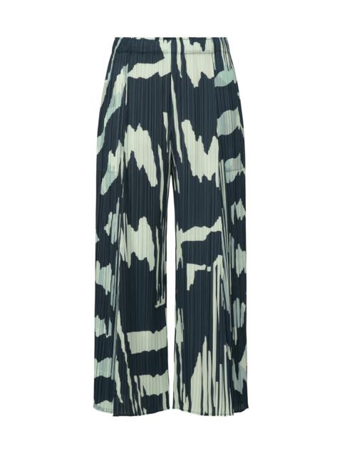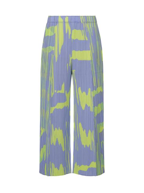 These flared pants feature printed lines reminiscent of light refraction on the surface of water. They have pockets on both sides. Product Information Material: 100% polyester Country of origin: Japan Waist specifications:rubber Pocket (position):both sides