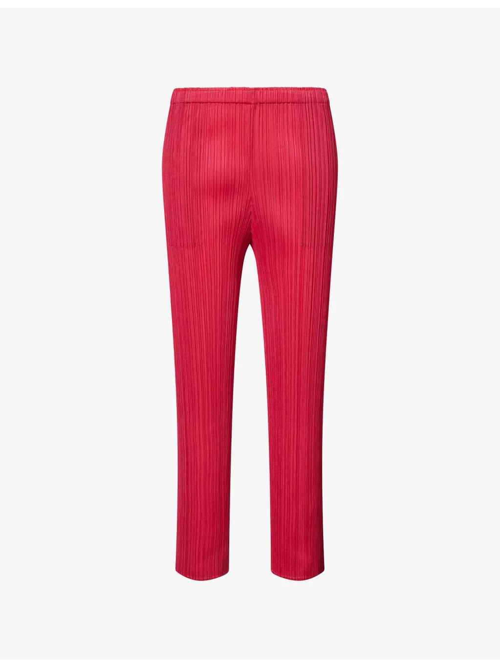 PRODUCT DETAILS - Pleats Please Issey Miyake knit trousers - 100% polyester - Regular fit, mid-rise, tapered leg, elasticated waistband, side slip pockets, all-over pleats - Machine wash at 30°C - Made in Japan - Size 3: rise 12in / 31cm, inside leg 25in / 64cm, leg opening 11in / 28cm - Model is 5ft 10in/1.78m and wears a size 3 - Lightweight, stretchy - This garment’s sizing is based on height and doesn’t conform to standard sizes. Please refer to the size guide for your desired length. Ref: R04585790