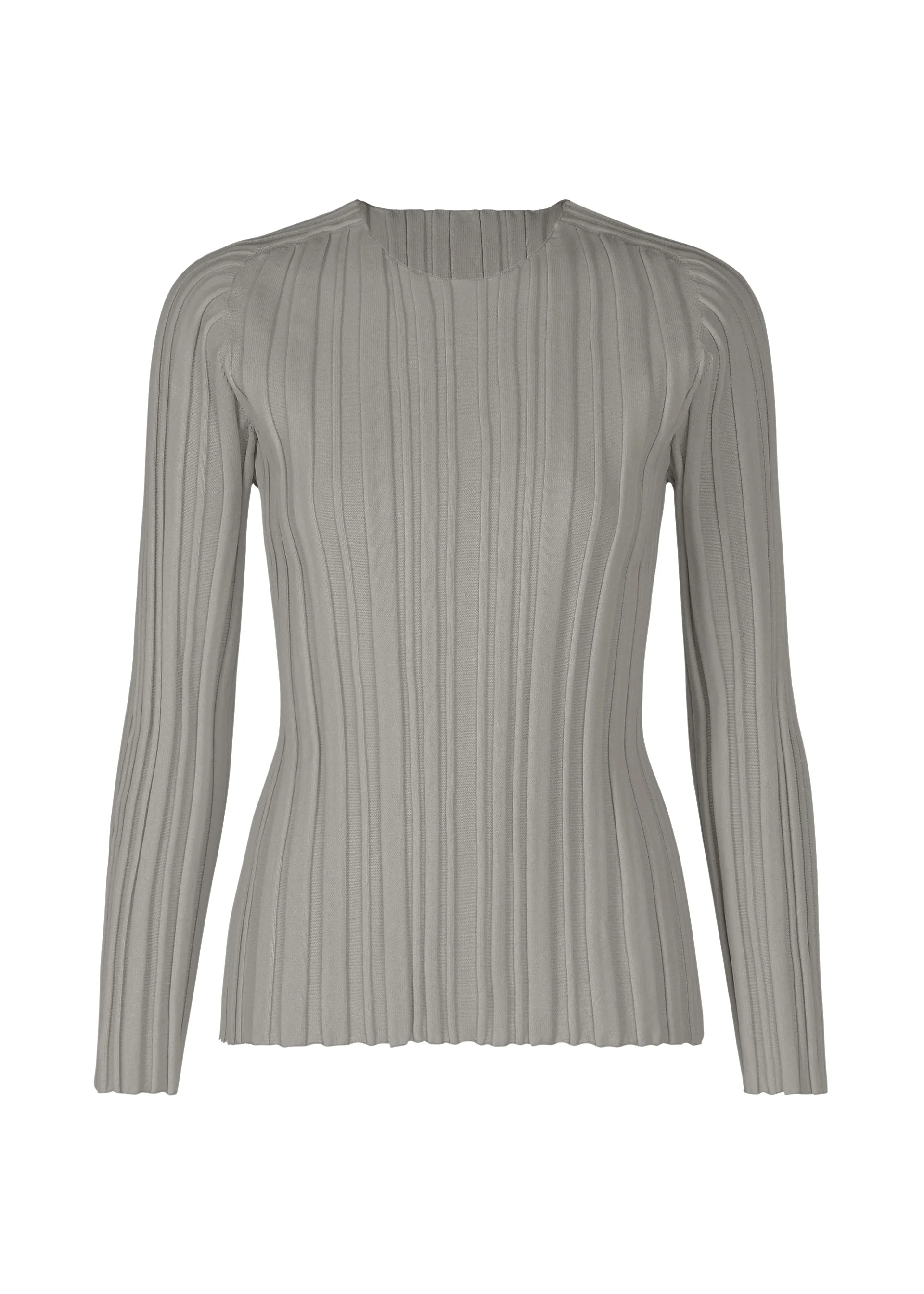 This round-neck, long-sleeved knit features thick pleat lines created through a knitted structure. It’s designed to layer easily with regular pleated items. Product Information Material: 100% Polyester Made In Japan Neckline / Collar:crew neck