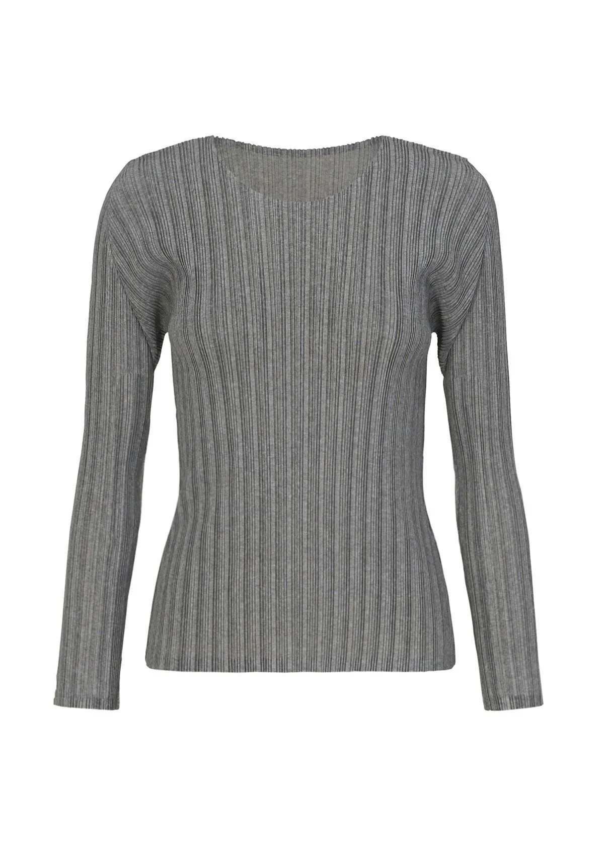 A basic long sleeve round neck top with ribbed pleats made of soft fabric.