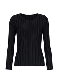 A basic long sleeve round neck top with ribbed pleats made of soft fabric.