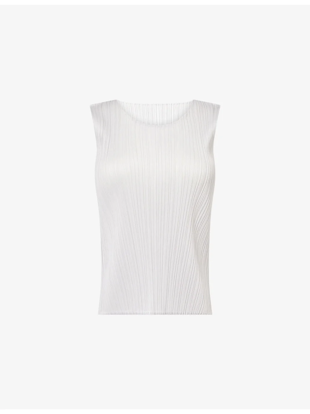 PRODUCT DETAILS - Pleats Please Issey Miyake knitted top - 100% polyester - Slim fit, round-neck, sleeveless, all-over pleated - Machine wash at 30°C - Made in Japan - Model is 5ft 10in/1.78m and wears a size 3 - Lightweight, stretchy - This garment’s sizing is based on height and doesn’t conform to standard sizes. Please refer to the size guide for your desired length. Ref: R04557122