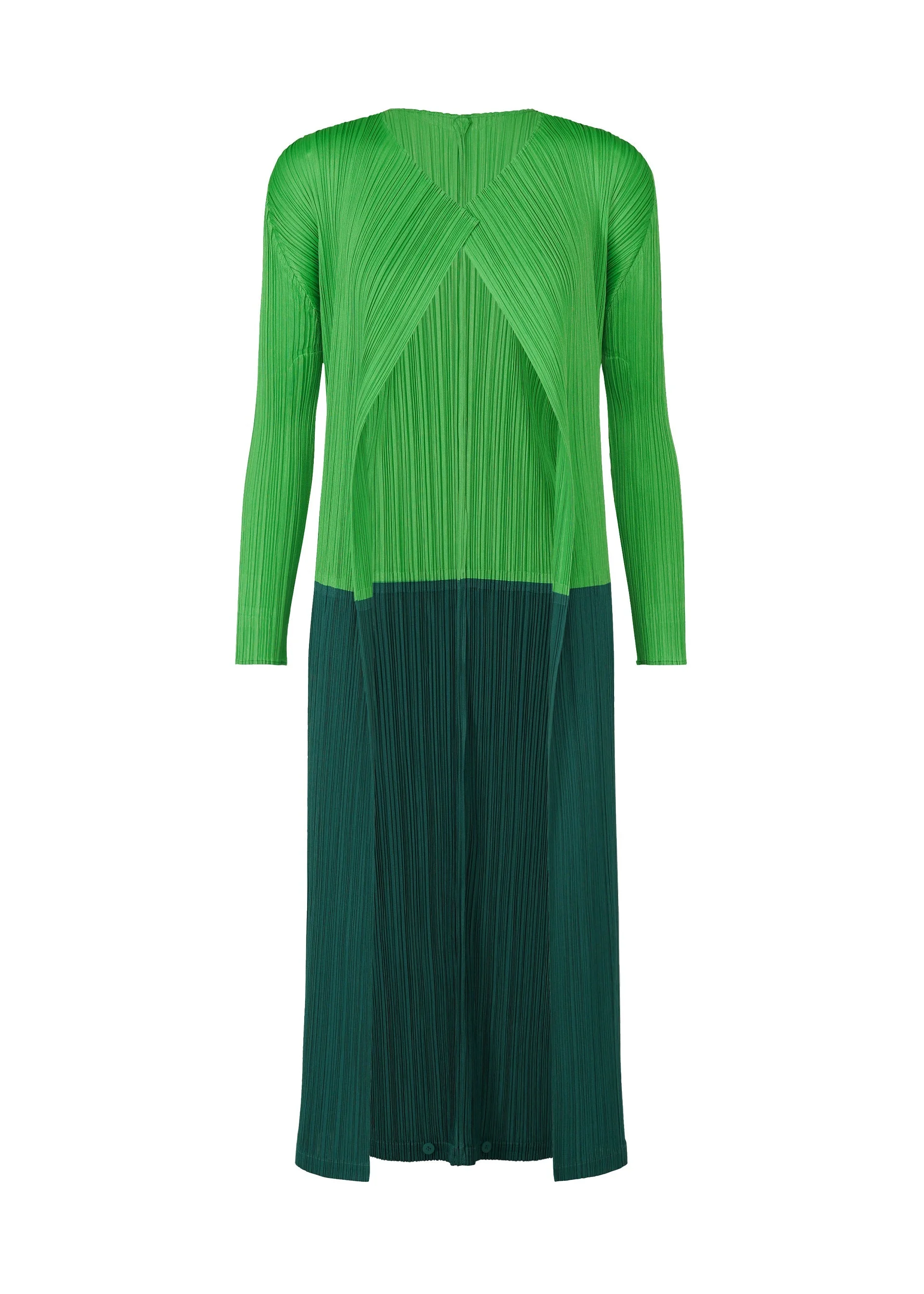 This cardigan lets you enjoy different silhouettes by folding back the wide slit and fastening it with a button on the shoulder. Adjusting the button placement enables versatile styling. It comes in a two-tone design inspired by playground equipment, and is available in three colors. Product Information Material: 100% Polyester Made In Japan Neckline / collar:Collarless Slit (position):Both sides