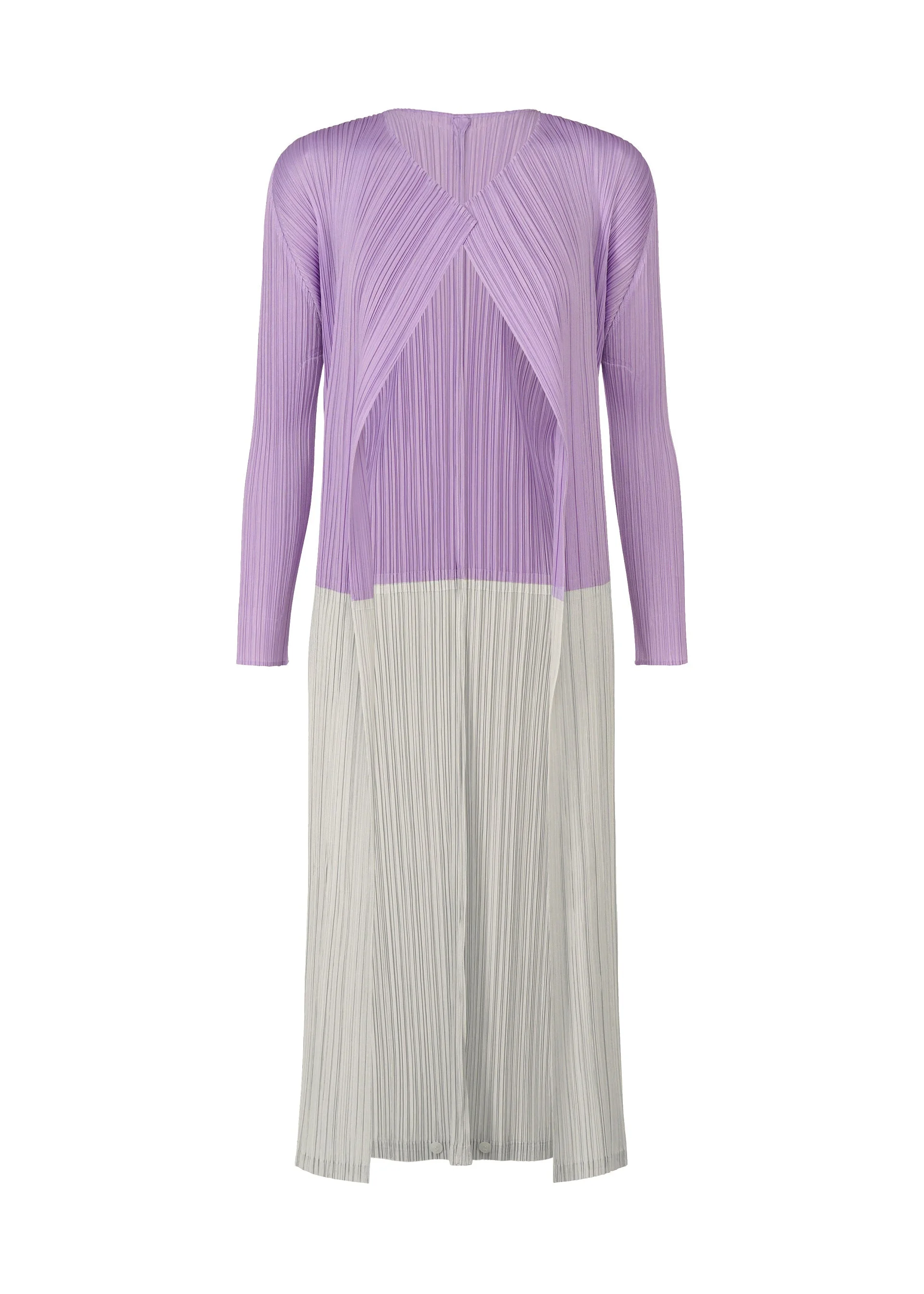 This cardigan lets you enjoy different silhouettes by folding back the wide slit and fastening it with a button on the shoulder. Adjusting the button placement enables versatile styling. It comes in a two-tone design inspired by playground equipment, and is available in three colors. Product Information Material: 100% Polyester Made In Japan Neckline / collar:Collarless Slit (position):Both sides