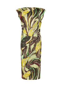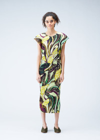 TARDIVO is a vividly printed series inspired by its namesake vegetable, known for its bold bitter flavor and striking red hue. This pleated dress has a straight fit, accentuated short sleeves, and a round neckline. Product Code: PP46-JH695 Material: 100% Polyester (Knit) Care: Care: Machine wash cold, gentle cycle. Only non-chlorine bleach, when needed. Do not tumble dry. Line dry in the shade. Do not iron. Do not dryclean.