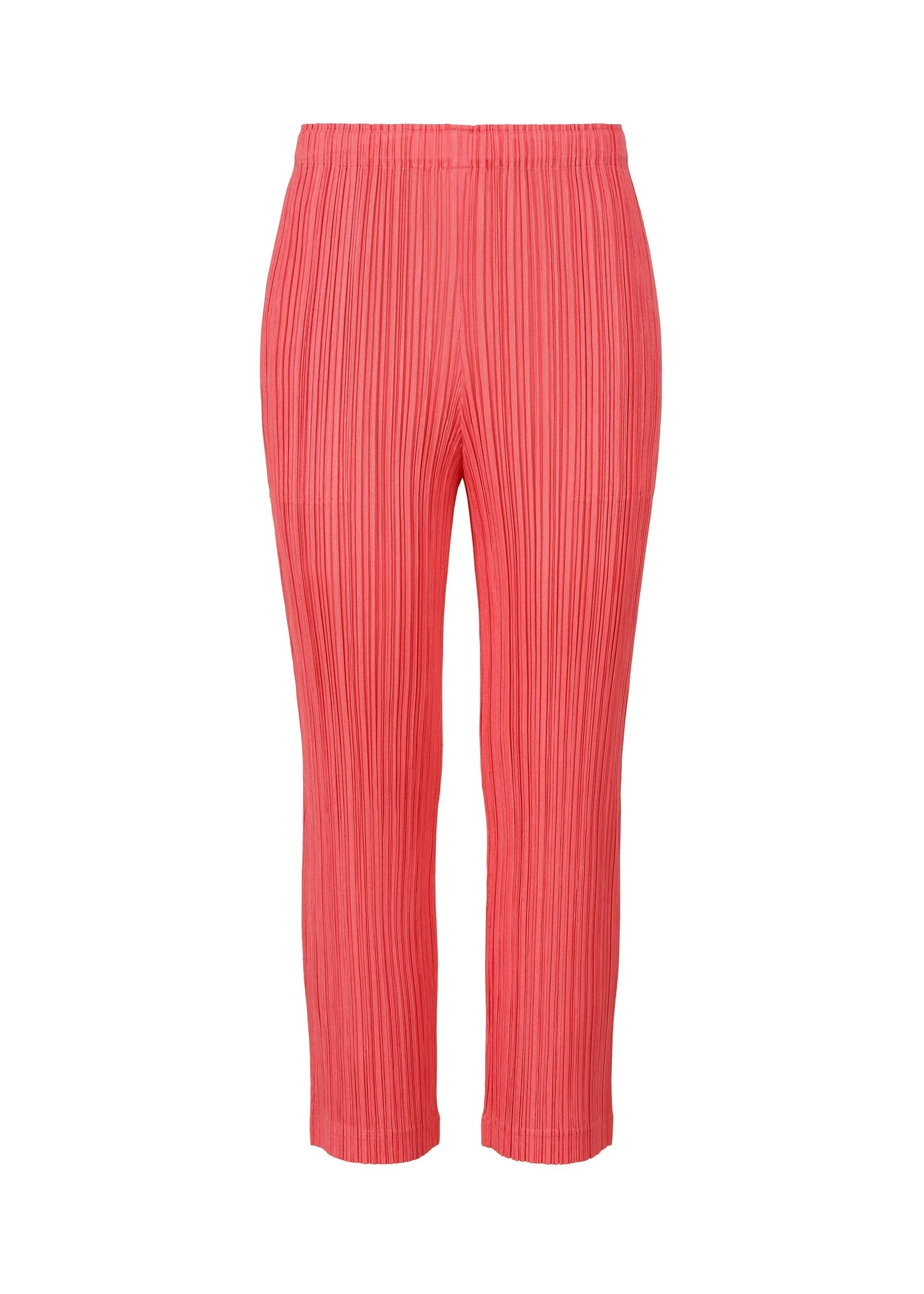 These straight pants are made from thick fabric. They have pockets on both sides. Product Information Material: 100% polyester Country of origin: Japan Waist specifications:rubber Pocket (position):both sides