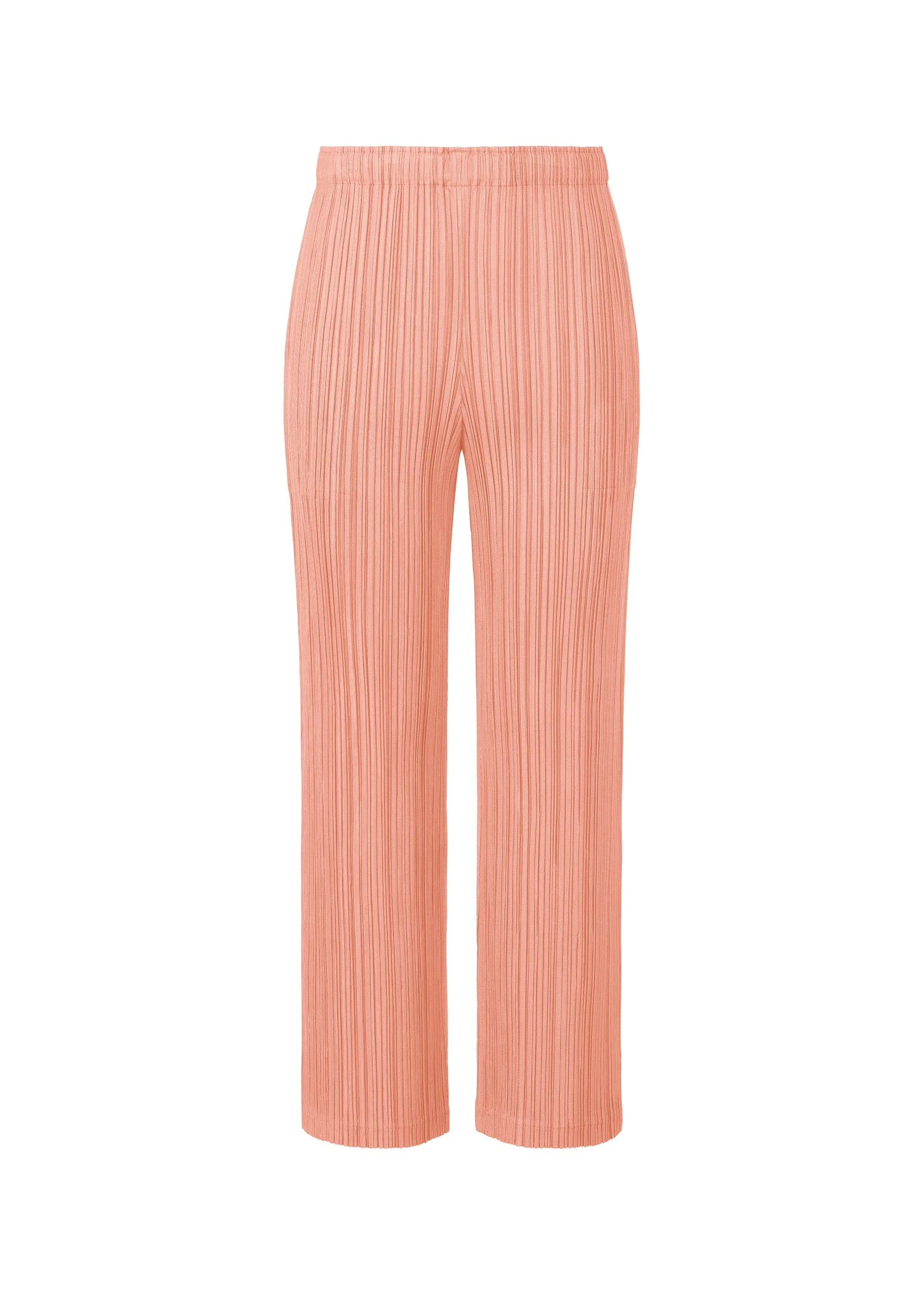 These straight pants are made from thick fabric. They are available in gentle colors that evoke spring. They have pockets on both sides. Product Information Material: 100% Polyester Made In Japan Waist specifications:Rubber Pocket (position):Both sides