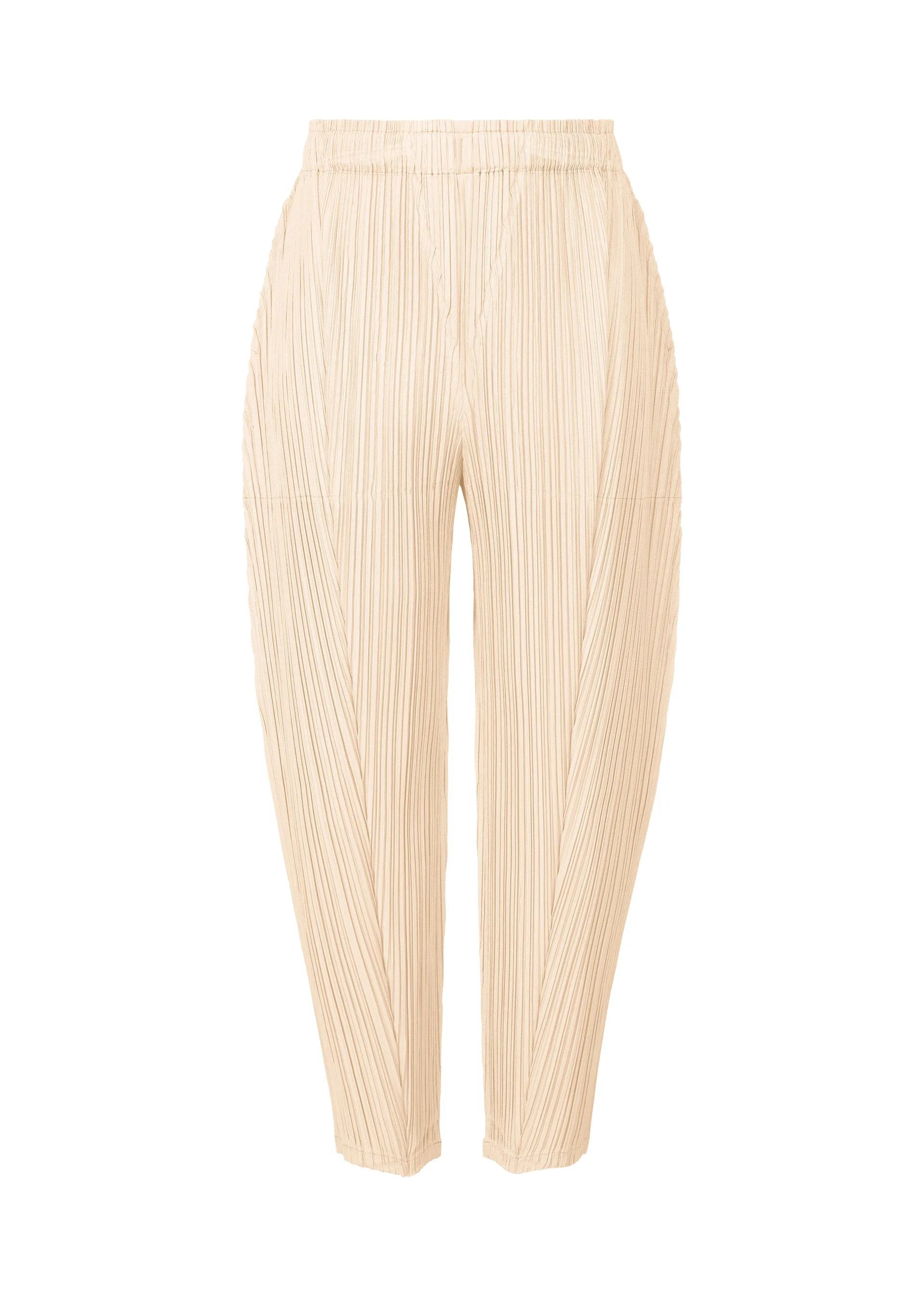 These tapered pants are made from thick material. They are characterized by their simple silhouette that is easy to style in outfits. They have pockets on both sides. Product Information Material: 100% polyester Made in Japan Waist specifications:rubber Pocket (position):Both sides