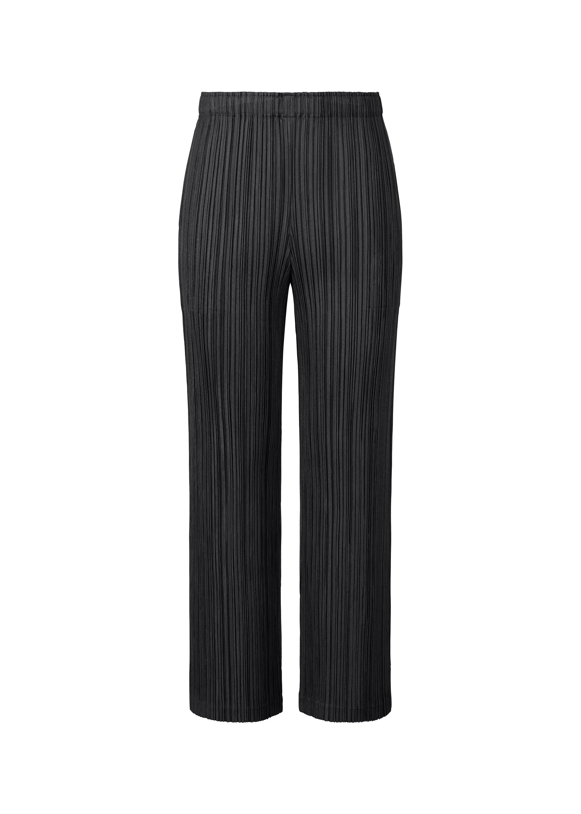 These straight pants are made from thick fabric. They are available in gentle colors that evoke spring. They have pockets on both sides. Product Information Material: 100% Polyester Made In Japan Waist specifications:Rubber Pocket (position):Both sides
