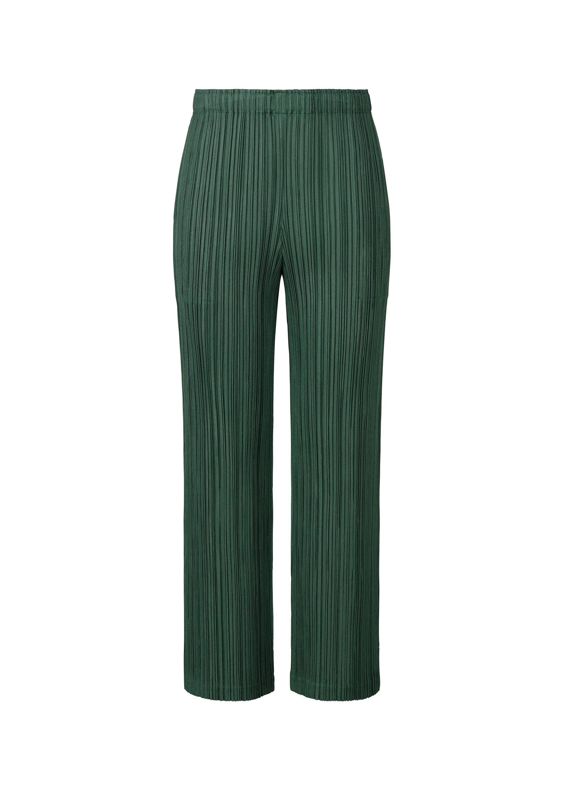 These straight pants are made from thick fabric. They are available in gentle colors that evoke spring. They have pockets on both sides. Product Information Material: 100% Polyester Made In Japan Waist specifications:Rubber Pocket (position):Both sides
