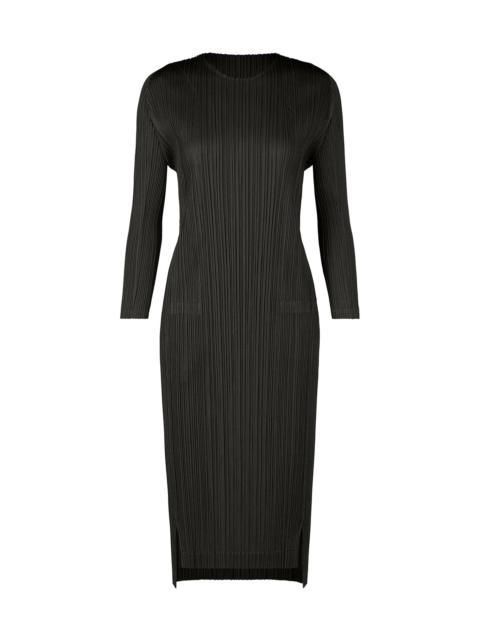 TRUNK introduces a new sleeve design with a dimensional, sharp shape and comfortable fit. This pleated, long sleeve dress has s straight silhouette and a round neckline. Product Code: PP36-JH434 100% Polyester (Knit) Care: Machine wash cold, gentle cycle. Only non-chlorine bleach, when needed. Do not tumble dry. Line dry in the shade. Do not iron. Do not dryclean.