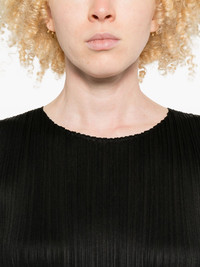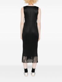 Wave pleated-fringe midi dress Highlights - Black - Pleated texture - Sleeveless - Crew neck - Fringed hem Imported Composition Polyester 100% SIZE & FIT Model measurements Height 5 ft 9 in(1.75 m) Bust/Chest 34.64 in(88 cm) Hips 36.61 in(93 cm) Waist 26.37 in(67 cm) Washing instructions Read Manufacturer Guidelines