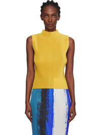 Garment-pleated tricot tank top. · Mock neck · Central seam at front and back · Keyhole at back collar Supplier color: Yellow 100% polyester. Made in Japan 252941F111014