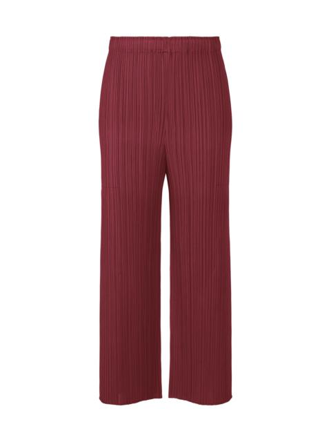 Medium-thick pants featuring a large slit that gives off a light impression with dazzling light and spring-like colors. There are pockets and slits on both sides. Product Information Material: 100% polyester Country of origin: Japan Waist specifications:rubber Pocket (position):both sides Slit (position):both sides