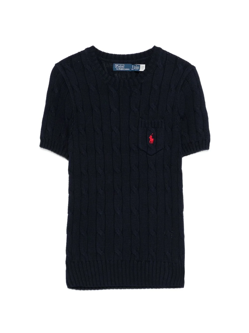 cable-knit pocket T-shirt Highlights - Navy blue - Cable knit - Chest pocket - Short sleeves - Round neck Imported Composition Cotton 100% Washing instructions Machine Wash