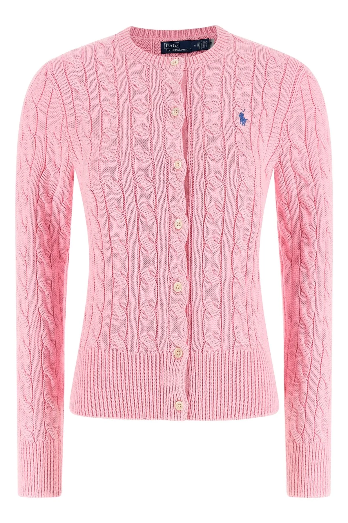 cod. 211971868010 Cardigan in pure cotton braided, slightly crop model, logo embroidery and front button closure, crew neck, long sleeves with cuffs. Color: Pink Size & Fit: Slim fit Composition: 100% cotton Made in: China PROMO CODE NOT APPLICABLE