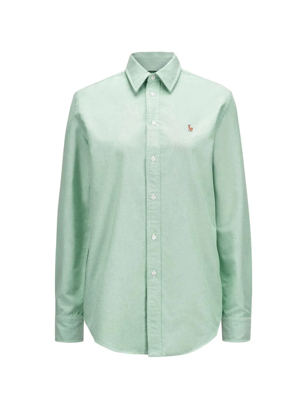 embroidered-logo shirt Highlights - Light green - Polo collar - Long sleeves - Button cuffs - Button fastening - Curved hem Imported Composition Cotton 100% Washing instructions Read Manufacturer Guidelines