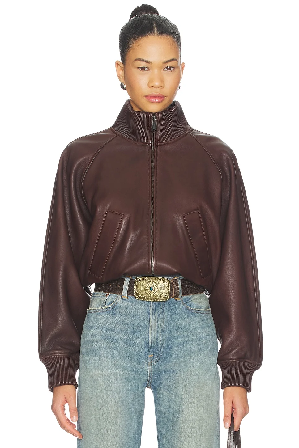 - Self: 100% sheep leather Lining: 100% cupro - Made in India - Specialized cleaning only - Front zip closure - Smooth grain leather fabric - Side seam pockets - Revolve Style No. PLOR-WO52 - Manufacturer Style No. 211A93148001