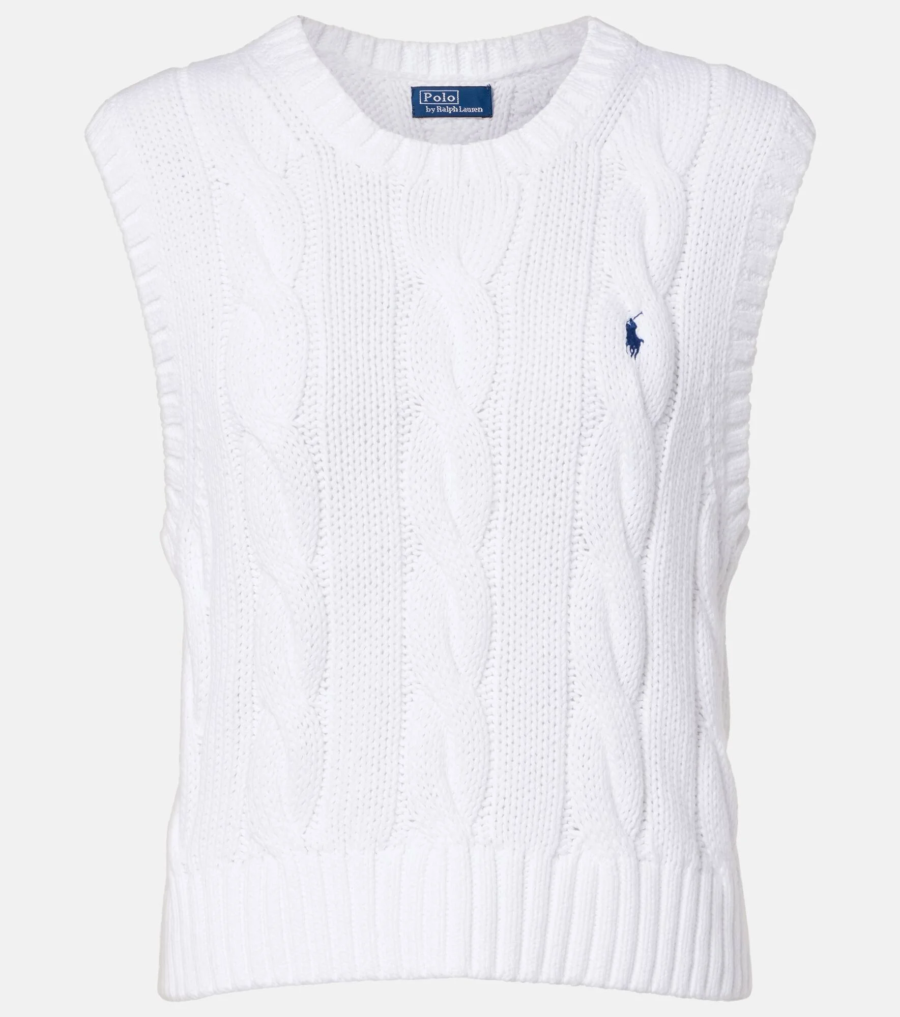 No brand captures all-American flair quite like Polo Ralph Lauren. Made from cotton, this sweater vest is a cable-knit piece with the brand's iconic Polo Player embroidery at the heart. Product Details - Material: 100% cotton - Care instructions: machine wash at 30 degrees - Made in Cambodia - Color: white - Designer color name: White - Item color: white - Collar: crewneck - Hem: ribbed - Item number: P01126713 Size & Fit - True to size - Straight fit - Slightly stretchy fabric - Slightly cropped - The model seen in the picture is 178cm-5'10" and wearing a size XS