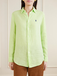 This linen shirt by Polo Ralph Lauren proves even the most classic staples can feel fresh, rendered in a bright hue that brings subtle playfulness to the timeless silhouette. It's cut for a relaxed fit with a point collar and finished with the embroidered signature pony at the chest.