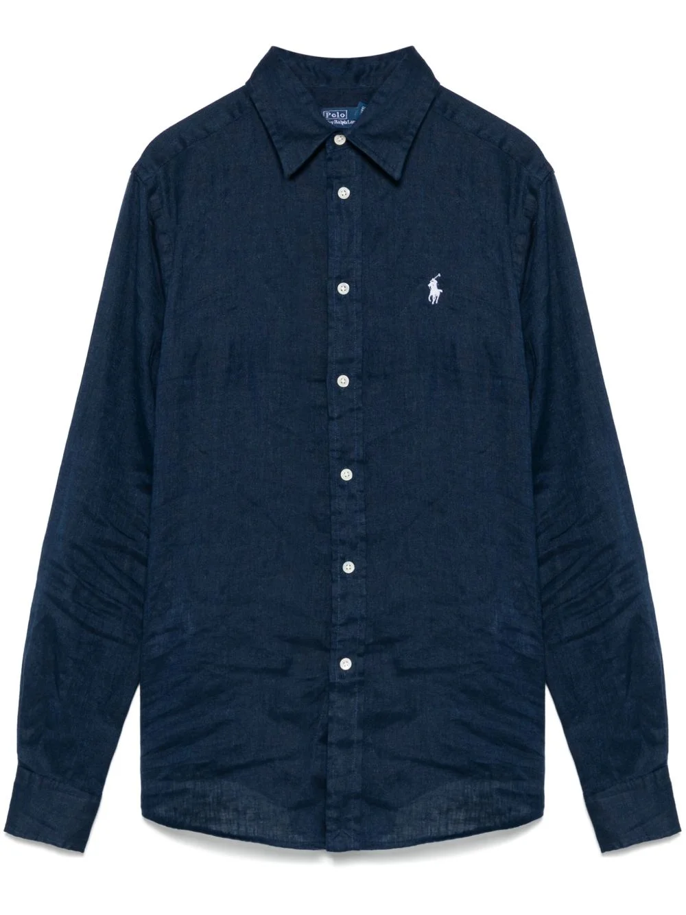 long-sleeve shirt Highlights - Navy blue - Front button fastening - Buttoned cuffs - Signature polo pony motif - Classic collar Imported Composition Linen/Flax 100% Washing instructions Machine Wash