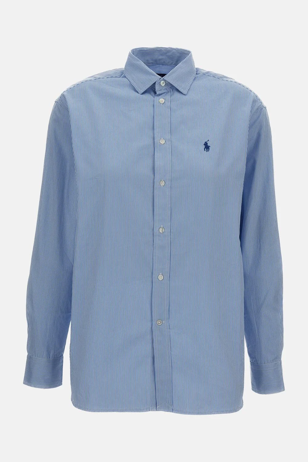 Long-sleeved striped cotton shirt Front button closure Classic collar Sleeves with buttoned cuffs Relaxed cut, comfortable fit Straight hem Color: light blue Details and Care Color: Light blue Composition: 100% cotton Made in: Cina Sku: 211910743508MEDIUMBLUEWHITE