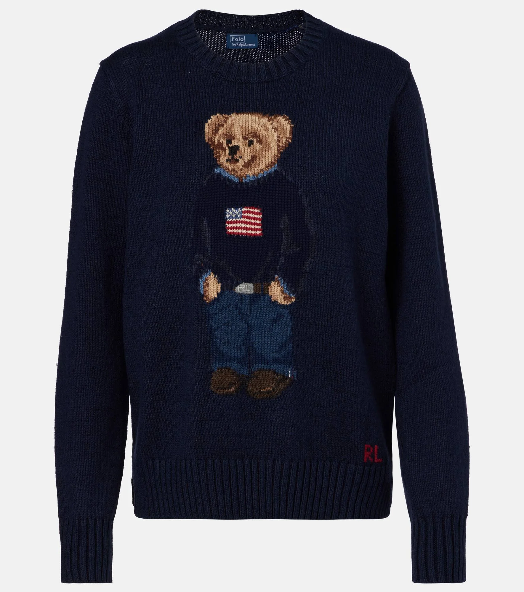 Polo Bear was introduced as Polo Ralph Lauren's fashionable mascot after employees gave Ralph Lauren a teddy bear that was dressed like him. It's the subject of the intarsia design of this cotton and linen sweater. Product Details - Material: 67% cotton, 33% linen - Care instructions: hand wash - Made in China - Color: blue - Designer color name: Navy Multi - Item color: blue - Embroidery: 100% cotton - Item number: P01076491 Size & Fit - True to size - Designed for a loose fit - Stretchy fabric - Falls to the hip - The model seen in the picture is 178cm-5'10" and wearing a size XS
