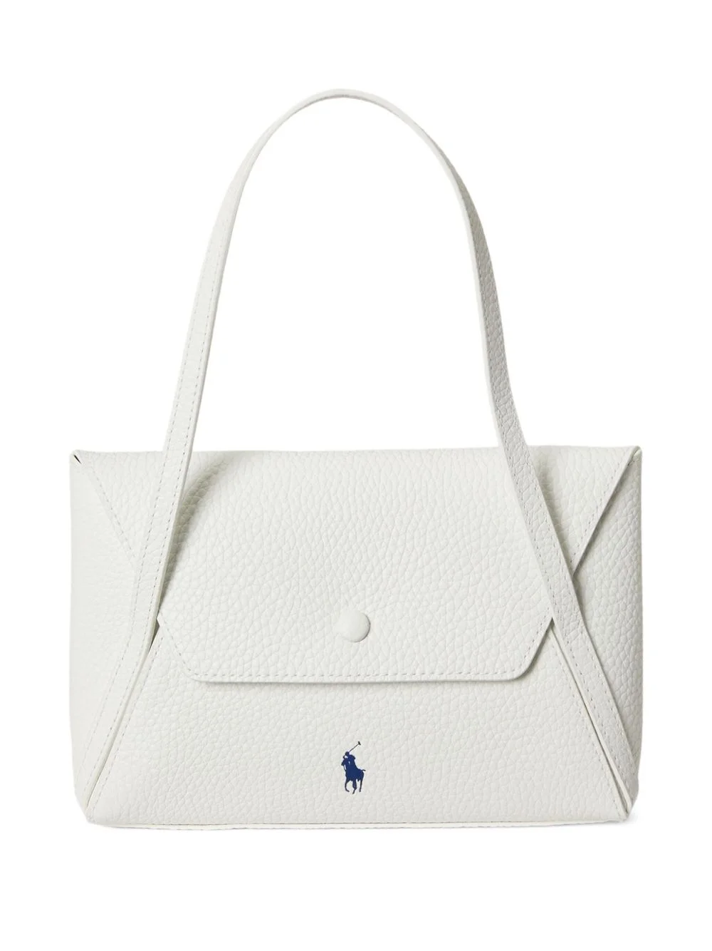 Polo Play mini bag Highlights - White - Pebbled leather - Top handles - Snapped flap closure - Pony detail - Debossed logo Imported Composition Outer: Leather 100% Lining: Leather 100% SIZE & FIT Measurement HEIGHT 5 in(12.7 cm) WIDTH 8.26 in(21 cm) DEPTH 1.49 in(3.8 cm)