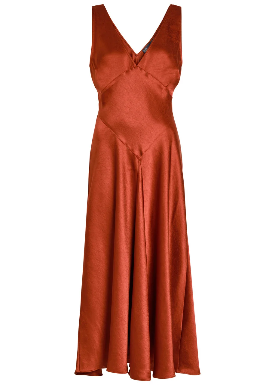 Polo Ralph Lauren V-neck Satin Midi Cocktail Dress