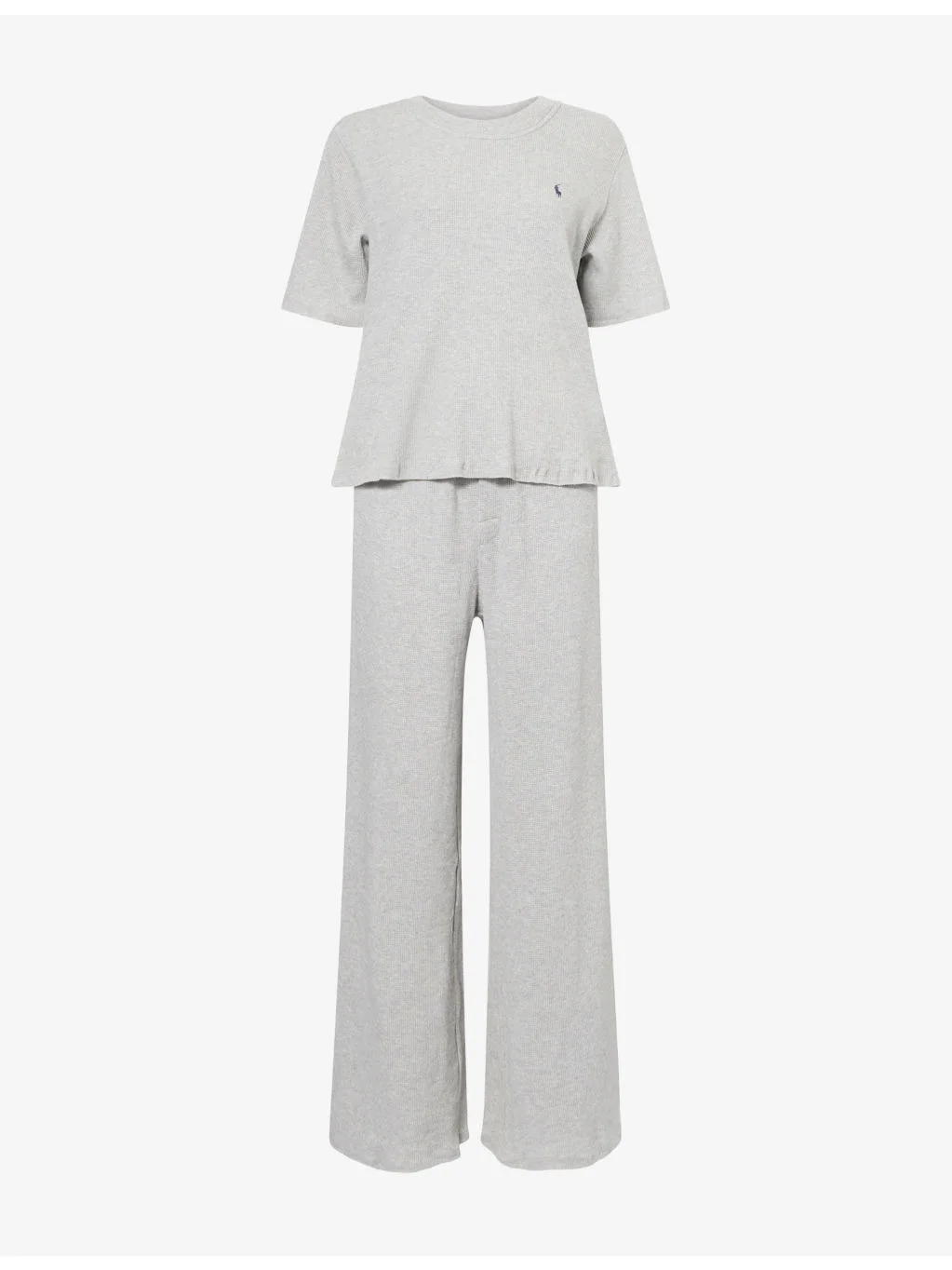 PRODUCT DETAILS - Polo Ralph Lauren cotton-jersey pyjama set - 57% cotton, 38% modal, 5% elastane - Top: Relaxed fit, round neck, short sleeves, logo embroidery at chest, waffle texture - Bottom: Relaxed fit, mid-rise, straight leg, branded elasticated waistband, waffle texture - Machine wash cold - True to size - Model is 5ft 10in/1.78m and wears a size small - Lightweight, stretchy Ref: R04537103