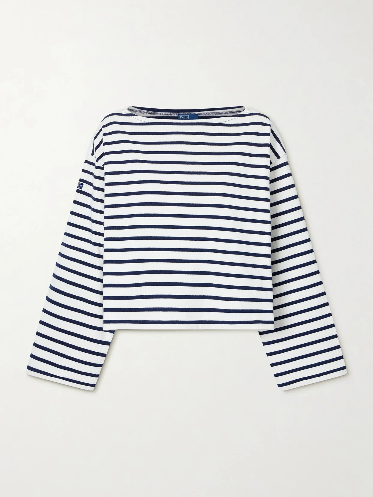 Polo Ralph Lauren's T-shirt is modeled on the mariniere , with its slim, navy and white stripes. It's cut from pure cotton in a relaxed, boxy silhouette and has a wide boat neck and fluted sleeves.