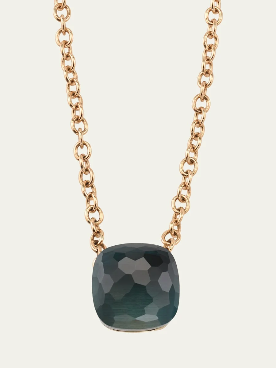 Pomellato pendant necklace 18karat solid gold Cushioncut London blue topaz 6.50 total topaz carat weight Adjustable length Lobster clasp Made in Italy