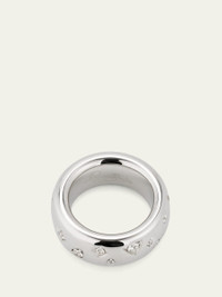 Pomellato "Iconica" maxi band ring 18-karat white gold Round-cut diamonds with assorted geometric settings 0.7 total diamond carat weight Made in Italy Online Inquiries: BGS21_PGH6M| Store Inquiries: #4673196