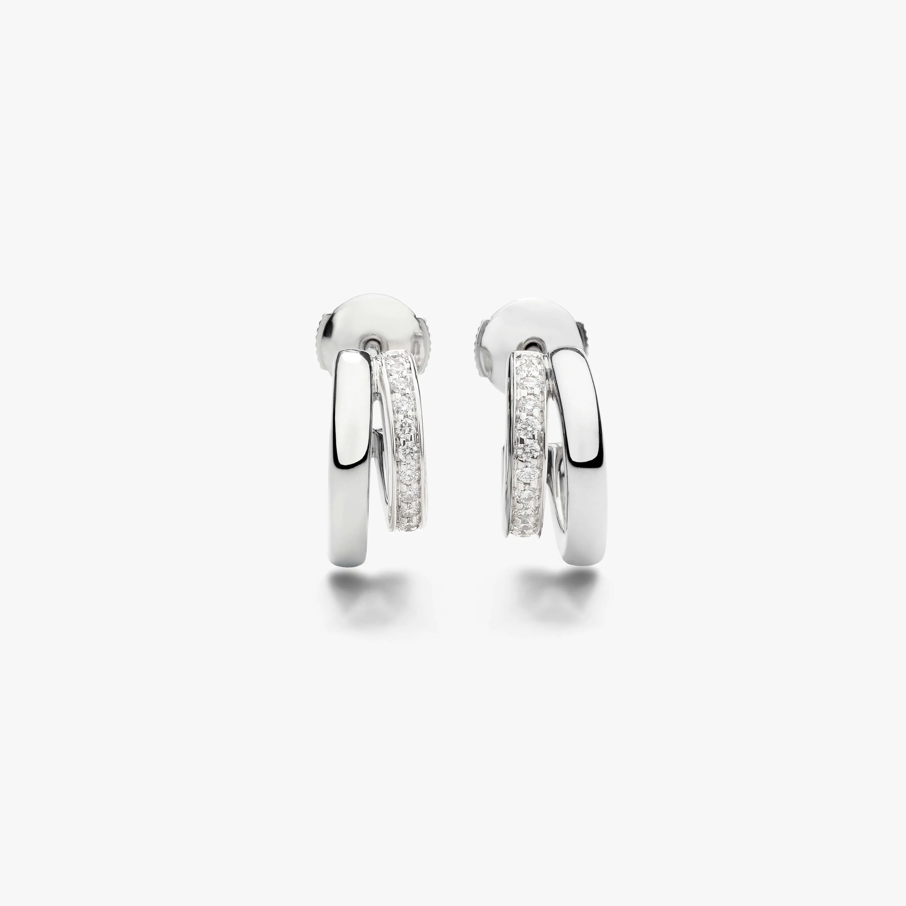 SKU: POB8111_O2WHR_DB000 Earrings In 18K Rhodium-Plated White Gold With 32 White Diamonds (≈0.4 Ct). Steeped in tradition yet bold and contemporary, Pomellato Together’s refined volumes are the hallmark of the Pomellato's style. The double loop earrings showcase Milanese understated elegance at its best. In white gold and diamonds with their eternal messenger of unity.
