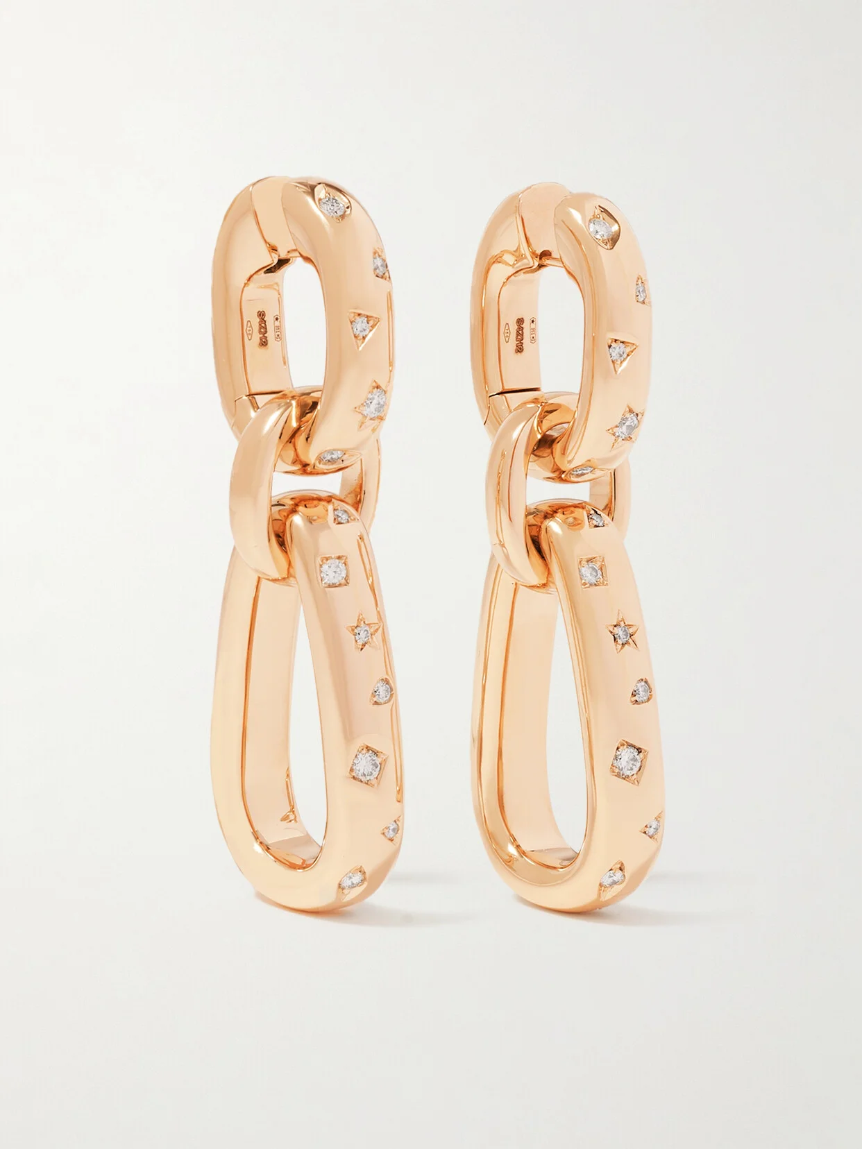 Pomellato looks to "the revolution of the 1960s" for these 'Iconica' earrings, which is why they have a sense of rebelliousness, unlike more classic hoops. They're cast from 18-karat rose gold and studded with diamonds in geometric settings, some of which are shaped like little stars.