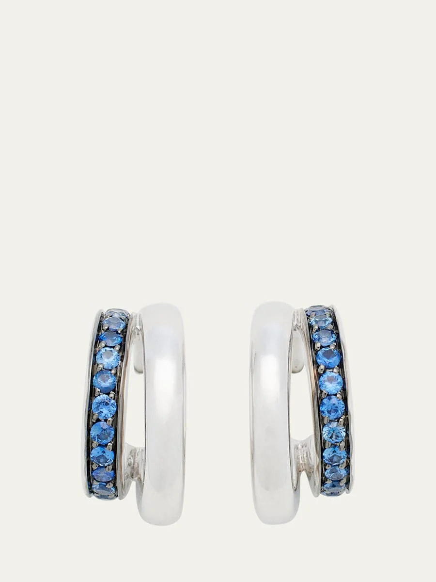 Iconica 18K White Gold and Sapphire Double Hoop Earrings