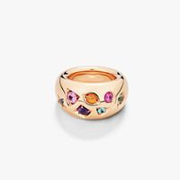 SKU: PAC5007_O7000_000VA Ring In 18K Rose Gold With 1 Green Sapphire (≈0.3 Ct), 1 Pink Sapphire (≈0.3 Ct), 1 Orange Sapphire Treated (≈0.2 Ct), 1 Ruby (≈0.2 Ct) , 1 Amethyst (≈0.2 Ct), 1 Zircon (≈0.2 Ct) And 1 Blue Sapphire (≈0.1 Ct). Experience the allure of Iconica - where Milanese design meets contemporary elegance, and every jewel becomes an emblem of empowerment. Each creation is a tribute to the unparalleled skills of Pomellato's master craftsmen, defining Iconica's uniquely powerful character. This striking cocktail ring showcases Pomellato's mastery of combining precious gemstones and features an enchanting array of gems including amethyst, ruby, pink sapphire, blue sapphire, zircon, orange sapphire and green sapphire, all set in rose gold. Through precise engineering, the fit ensures both comfort and presence on the finger. The ring features Pomellato's flush mount technique, where recessed settings carved in decorative gem-cut shapes create an enchanting visual illusion that highlights both the colored gemstones and the house's high levels of craftsmanship.