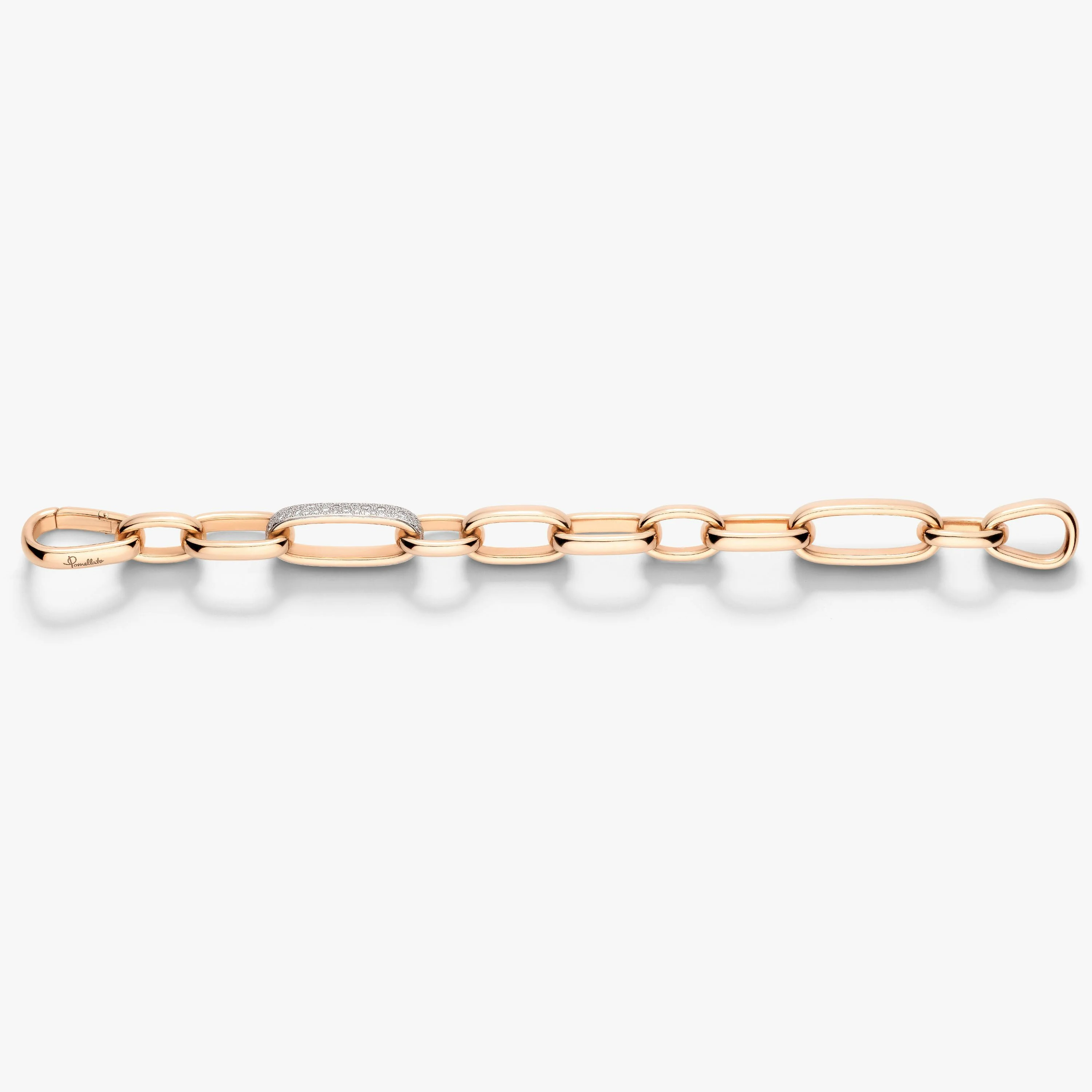 SKU: PBB7128_O7WHR_DB000 Bracelet 18K Rose Gold With 82 White Diamonds (≈1.2 Cts) On 18K White Rhodium-Plated Rose Gold. As master of the art of chain making Iconica offers a medium chain bracelet enhanced with the addition of a diamond pave to the outsize link.