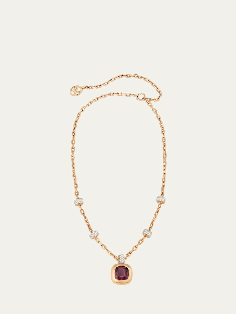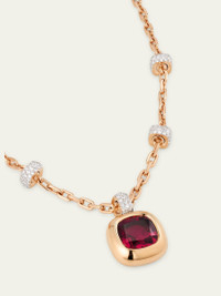 Pomellato necklace from the Nudo collection features a bail and accent stations with white diamonds. The pendant is set with a cushion-cut rubellite Approx. 40cm - 45cm - 50cm length Polished 18-karat rose gold Diamond total carat weight: 2.55 Rubellite total carat weight: 10.5 Adjustable length Lobster clasp Made in Italy Online Inquiries: BGS21_PMKEQ| Store Inquiries: #5003274