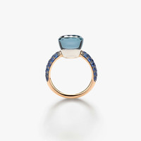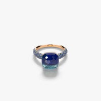 SKU: PAB9040_O6BKR_ZALTL Ring In 18K Rose And White Gold With 1 London Blue Topaz, 1 Lapis (≈10.2 Cts) And 38 Blue Sapphires (≈0.9 Ct) On 18K Black Rhodium-Plated Rose Gold. Nudo continues to be Pomellato’s signature design with its defining trait of vibrant colours. The new nudo Ring is immediately recognizable in a brand new doublet combinations: London Blue topaz with lapis lazuli and a sapphire pave.