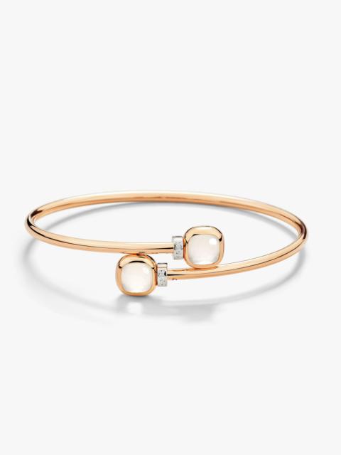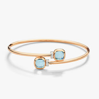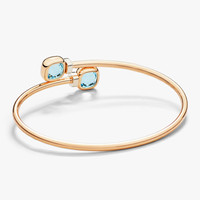 SKU: PBC5020_O6WHR_DB0YY Bracelet In 18K Rose And White Gold With 2 Sky Blue Topazes (≈7.2 Cts) And 6 White Diamonds (≈0.02 Ct) On 18K Rhodium-Plated White Gold. Nudo is quintessentially Pomellato, with its bold design standing as the Maison's most iconic design. Born from the revolutionary concept of freeing gems from their traditional bezels to showcase their naked splendor, each Nudo jewel captures Pomellato's unique spirit and Milan's understated elegance. Every facet tells a story of artistic innovation and masterful craftsmanship. The new Nudo Mini collection presents a refined interpretation, offering the same distinctive character in an intimate scale perfect for everyday wear. This elegant Mini bangle features two sky blue topaz gemstones that capture the essence of Mediterranean waters. The new smaller dimension brings an added versatility to the iconic design while maintaining its bold presence. The transparent, ethereal quality of the gems is enhanced by their rose gold setting and diamond details, creating a harmonious balance between color and light. The flexible structure and refined proportions make this piece ideal for both solo statements and creative stacking.