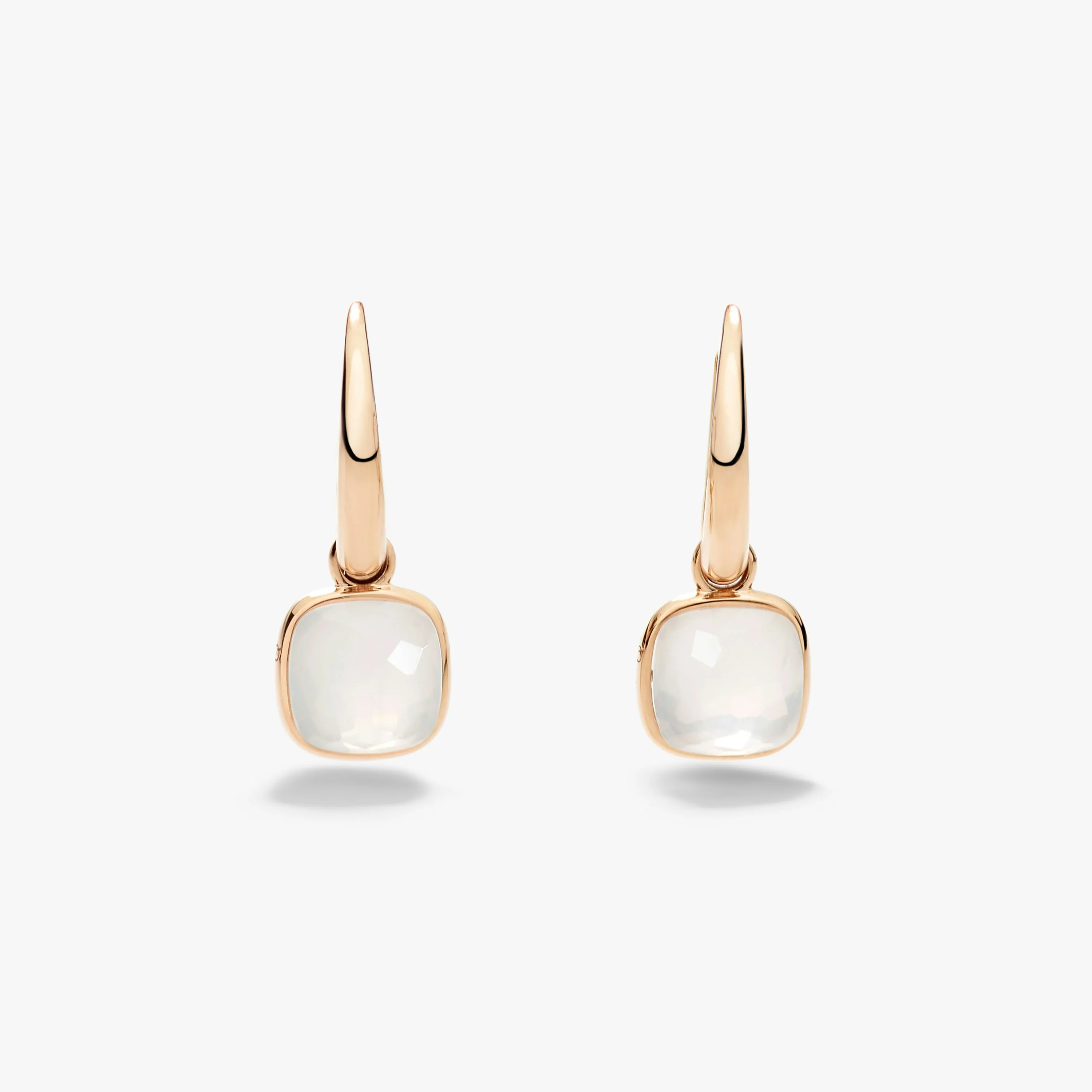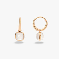 SKU: POC5020_O7000_00QLT Earrings In 18K Rose Gold With 2 Milky Quartzes (≈5.8 Cts). Nudo is quintessentially Pomellato, with its bold design standing as the Maison's most iconic design. Born from the revolutionary concept of freeing gems from their traditional bezels to showcase their naked splendor, each Nudo jewel captures Pomellato's unique spirit and Milan's understated elegance. Every facet tells a story of artistic innovation and masterful craftsmanship. The new Nudo Mini collection presents a refined interpretation, offering the same distinctive character in an intimate scale perfect for everyday wear. These Nudo Mini earrings showcase the ethereal beauty of milky quartz, its translucent depths creating an effect of captured moonlight.The more intimate proportions of the Mini collection bring a fresh delicacy to the iconic design, while the clessidra-cut gems showcase Pomellato's masterful stone-cutting expertise.The sleek hoop design ensures comfortable wear while maintaining the collection's contemporary elegance.