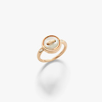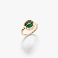 SKU: PAC5030_O7000_BMPMY Reversible Ring In 18K Rose Gold Front: 1 Malachite (≈1.5 Cts) With 12 White Diamonds (≈0.06 Ct) Back: 1 White Mother-Of-Pearl (≈1.1 Cts). The Pom Pom Dot collection reinterprets Pomellato's heritage, drawing inspiration from a 1974 button-inspired gold necklace. Each reversible creation features two distinct faces, transforming the historic button motif into an emblem of connection and protection. This contemporary design celebrates both function and symbolism through versatile, playful jewels. This new reversible ring is a masterpiece of craftsmanship showcasing on one side malachite with a diamond-set thread, chosen for its deep green hue and natural banding, and a simple twist reveals a mother-of-pearl surface with a rose gold thread on the other side. The contrast between the stone's organic patterns and Pomellato's precise craftsmanship creates a bold design that captures both nature's beauty and the Maison's playful spirit.