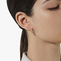POB8111-O7000-DB000 Earrings in 18K rose gold with 32 white diamonds (≈0.4 ct) on 18K white rhodium-plated rose gold. Deeply symbolic, the Pomellato Together collection captures the connections that bind us together, celebrating love in its many forms. These double band rose gold earrings set with white diamonds, symbolizing the power of unity and the strength of togertherness, are the perfect Milanese tribute to love.