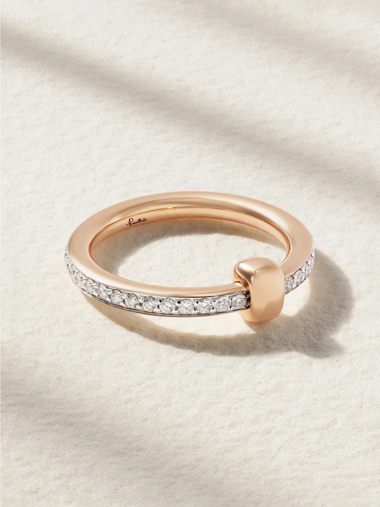 Pomellato's 'Together' collection symbolizes "the bonds that unite us"; making pieces like this ring such thoughtful gifts. It's handmade from 18-karat rose gold and has a slim band encrusted with 41 tiny diamonds, totaling 0.50-carats, mounted in white rhodium-plated settings.