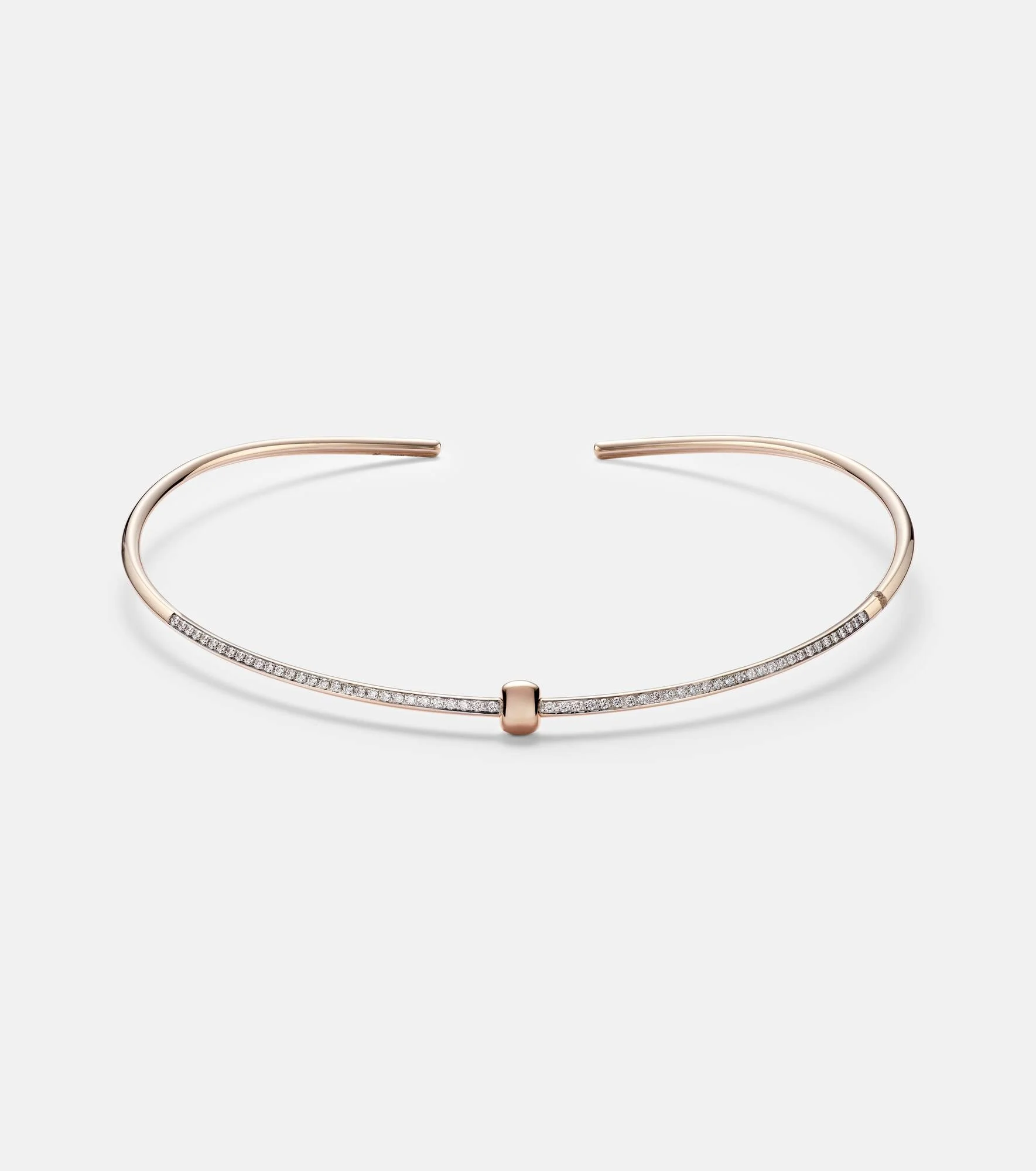 Pomellato's contemporary heirlooms pay homage to Milan's goldsmithing tradition with uniquely cut gemstones and modern settings. Italian-crafted from 18kt rose gold, the Together choker is intricately decorated with a total of 60 pave-set, brilliant-cut diamonds. Product Details - Material: 18kt rose gold - Made in Italy - Item color: rose gold - Stone I: 0.8 diamonds, brilliant-cut, pave setting - This piece features natural diamonds only - Item number: P01050098 Size & Fit - Min. width 2mm-0.1" - Max. width 8mm-0.3" - Circumference 38,5cm-15" - Opening 2,5cm-1"