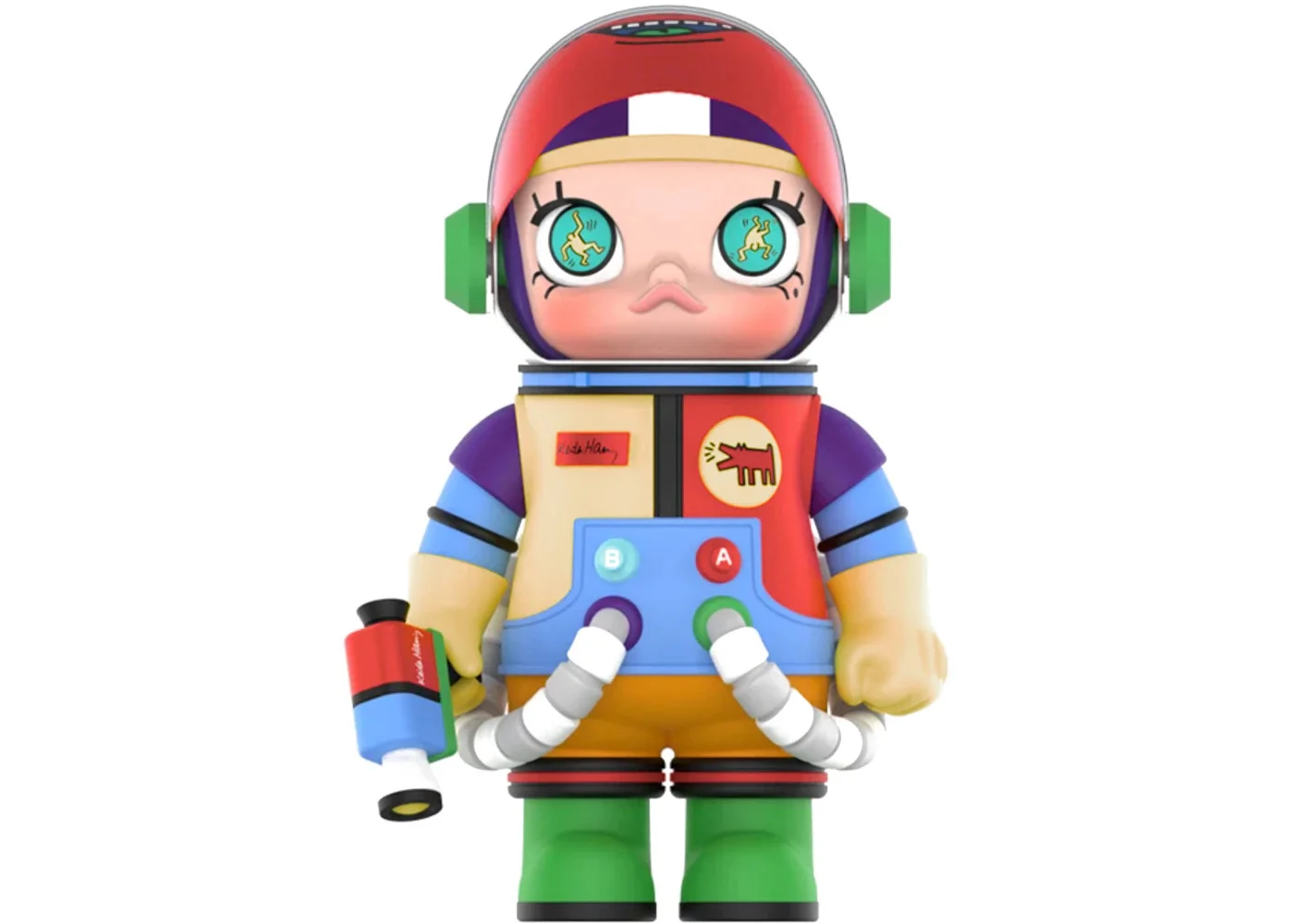 The Pop Mart Mega Collection Space Molly x Keith Haring 1000% stands over two feet tall. It is an adorable figurine that is made of PVC and ABS plastic. Pop Mart is a Hong Kong toy company famous for designing and manufacturing collectible figurines. The outfit and accessories show that this Molly figurine is ready to go to space. This includes its colorful space suit, helmet, and NFC sensor. Rosy cheeks, expressive eyes, and an energy tank featuring pop/graffiti artist Keith Haring's famous barking dog artwork give this figurine a more exciting look. Kenny Wong designed Pop Mart Mega Collection Space Molly x Keith Haring 1000%. Wong owns KENNYSWORKS and has an impressive portfolio of action figures. Our team was most impressed that the figurine had movable parts and accessories. These include its movable helmet, arms, and a removable NFC censor. It was released on November 14, 2021, and retailed for $925. - Season FW21 - Product Line Mega Space Molly - Release Date 2021-11-14 - Retail Price 925 - Dimensions 700mm - Featured false