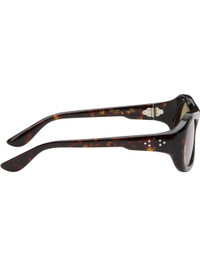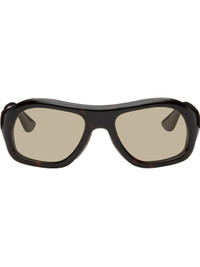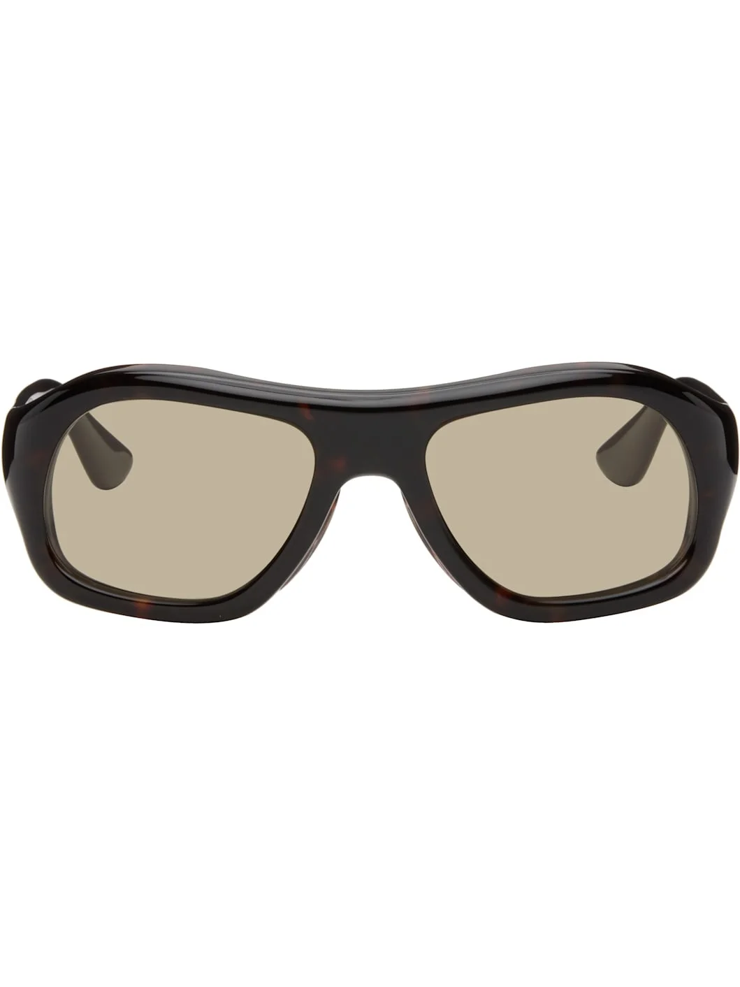 Handcrafted aviator-style tortoiseshell cellulose acetate-frame sunglasses. · Green lenses · 100% UVA/UVB protection · Integrated nose pads · Rivets at temples · Exposed core wires · Silver-tone hardware · Includes pouch · Size: 55.20 137 Part of the Bast collection. Supplier color: Myrrh/Olive Acetate. Made in Japan 252458F005008
